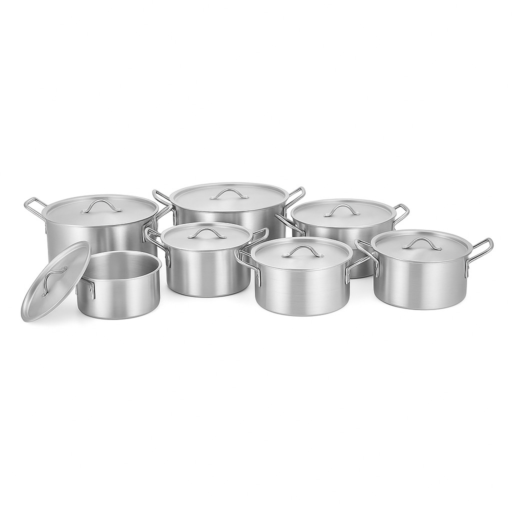A 7 részes alumínium edénykészlet tökéletes választás azoknak, akik tartós, könnyű, bevonatmentes és elegáns konyhai eszközöket keresnek.