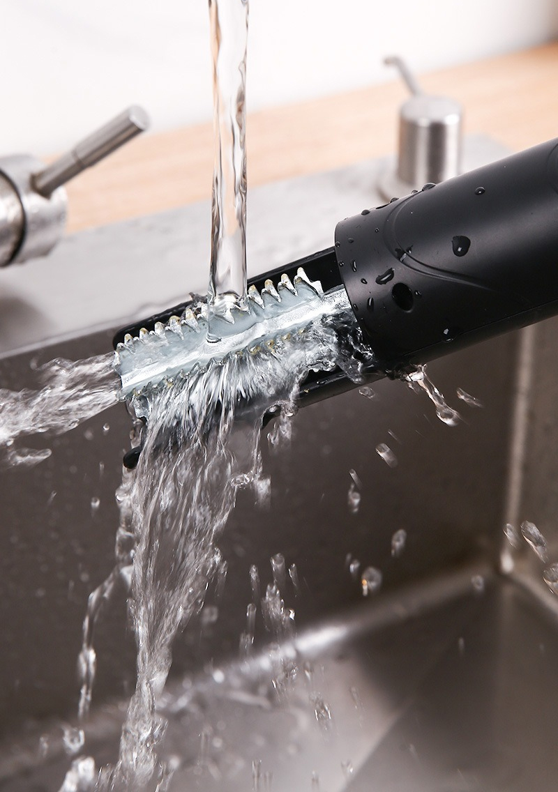Ergonomikus fogantyúja kényelmes és stabil fogást biztosít. A készülék IPX7 szintű, teljesen vízálló kivitelű, így biztonságosan használható nedves környezetben is. Beépített, újratölthető akkumulátorral rendelkezik, amely hosszú üzemidőt biztosít vezeték nélküli használat mellett.