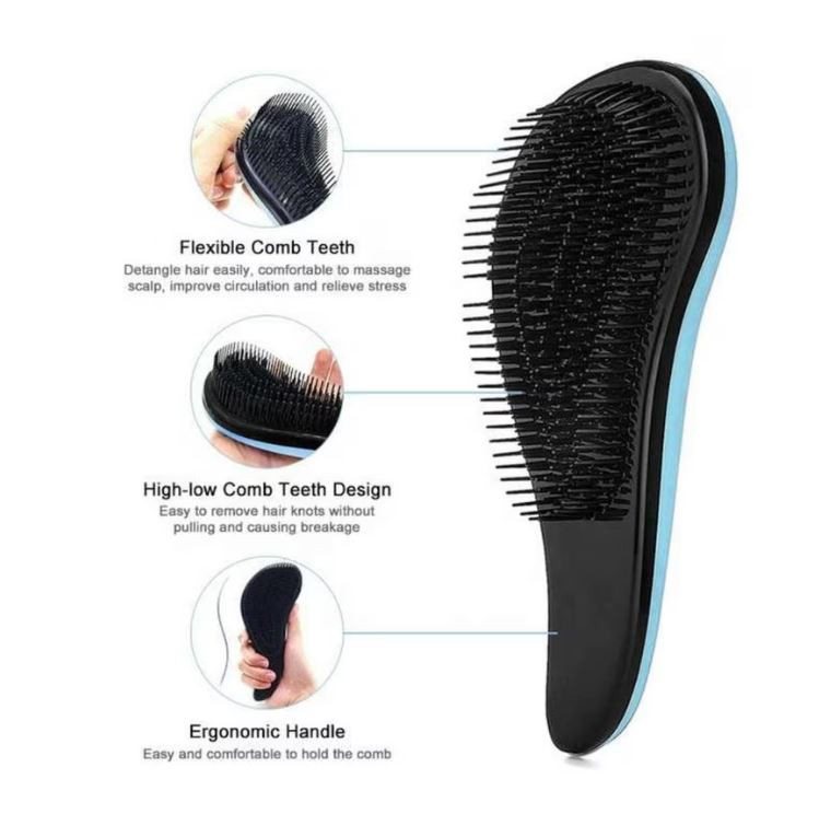 Az ergonomikus, simított ívű nyél kényelmes fogást biztosít, csökkenti a csukló terhelését, és nagyobb felületet fed le kevesebb húzással. A kefe használata közben finoman masszírozza a fejbőrt, fokozza a haj fényét, illetve csökkenti a töredezést.