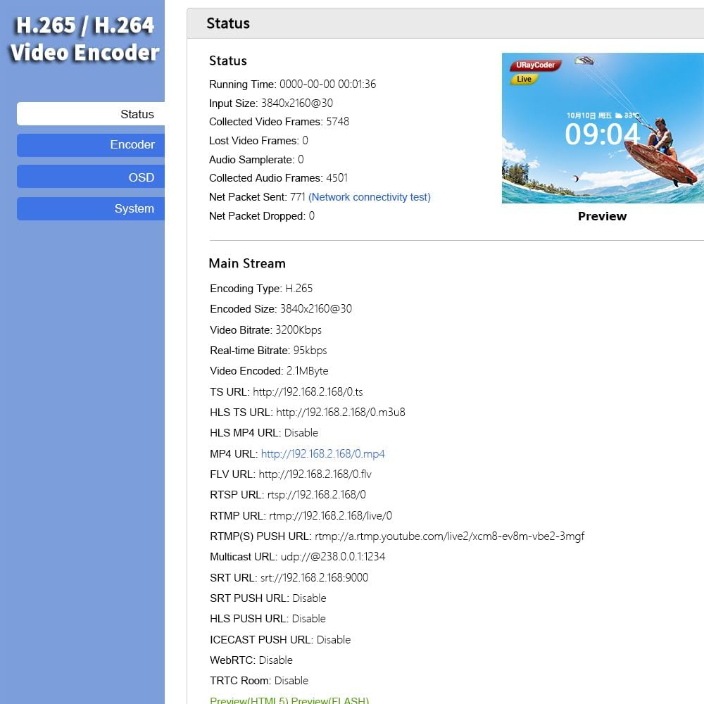 A URayCoder UHE265-1L-4K egy hardveres HDMI → IP video encoder, amely egy HDMI-s eszköz (kamera, laptop, lejátszó) képét és hangját élő internetes közvetítéssé alakítja.Számítógép nélkül képes YouTube-ra, Facebookra, OBS-be és más streaming szerverekre közvetíteni, akár 4 platformon egyszerre.