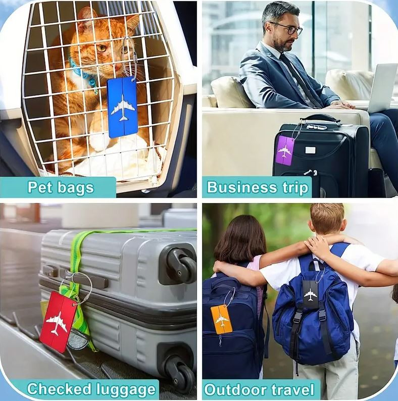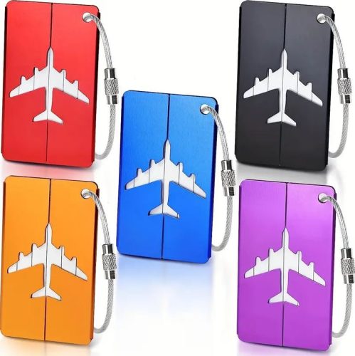 A készlet 5 különböző színű címkét tartalmaz: piros, kék, fekete, arany és lila.A jellegzetes repülőgép minta már messziről felismerhetővé teszi a poggyászt, így időt spórol a csomagkiadó pultnál.