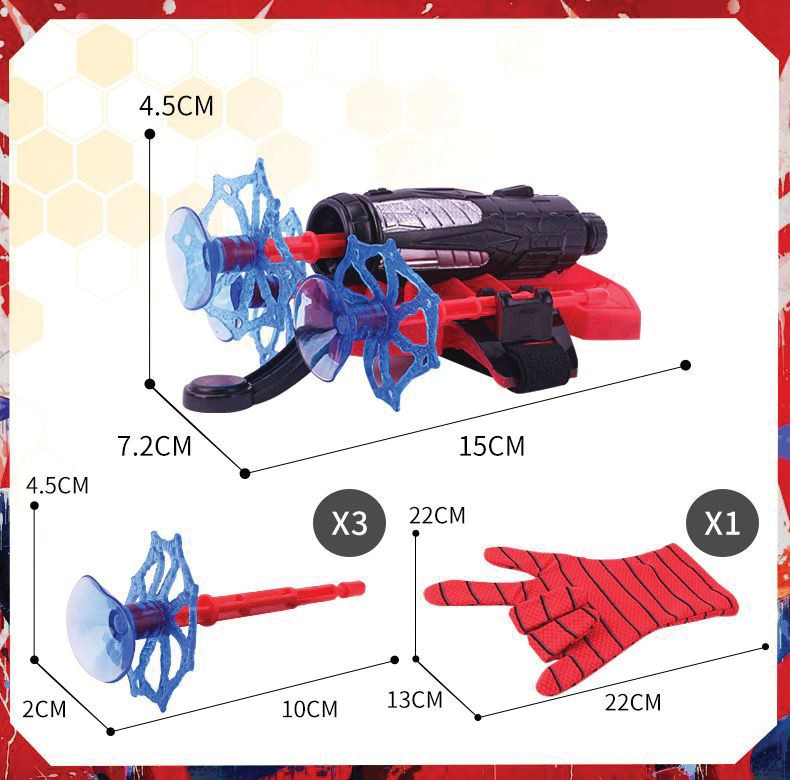 Változtassa gyermekét szuperhőssé! Gyermeke imádni fogja ezt a Mókember kesztyűt tapadókoronggal! Csak annyit kell tennie, hogy ráteszi a kesztyűt a kezére, a csuklóhoz köti az kilövőt, és betölti a nyilakat. Akkor a kicsi készen áll támadásra és minden ellenség megsemmisítésére!