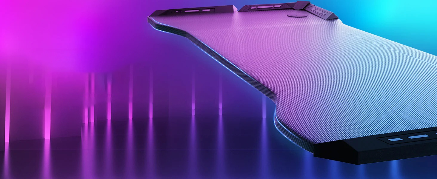 RGB Gamer számítógépasztal karbon szálas felülettel